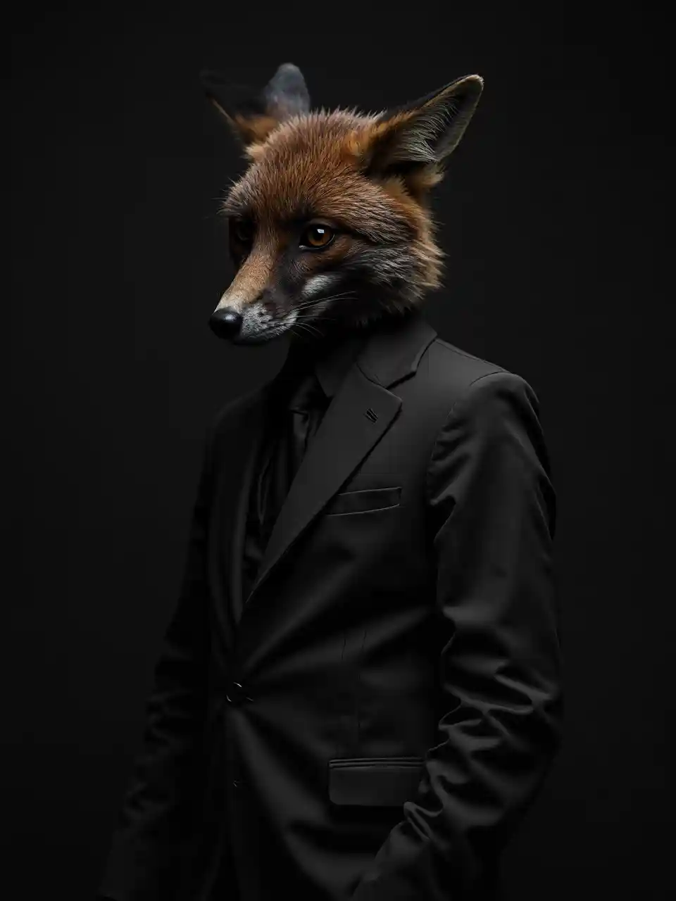A福克斯,前卫,simplygo,photoshoot spread,穿着全黑,黑底,harpers bizarre,cover,爆头,hyper realistic