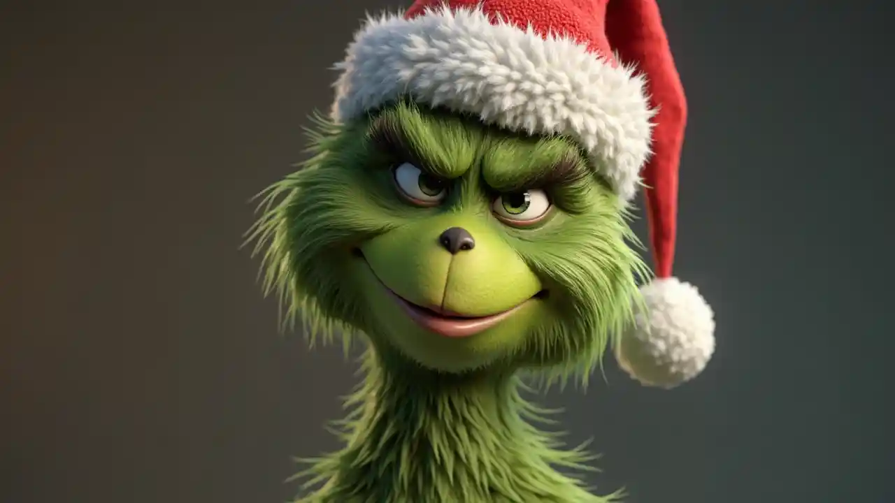 戴圣诞老人帽子的格林奇3D渲染图