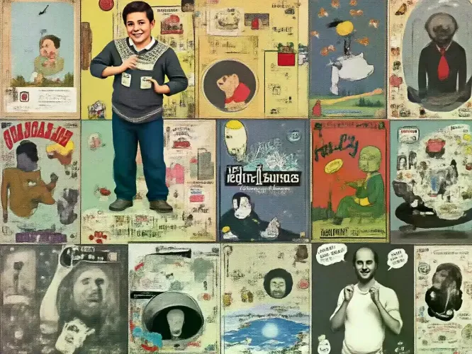 "复古拼贴混乱(超现实起义:1.5),展示了复古广告、超现实意象和不合逻辑的联系的生机勃勃和混乱的混搭。The