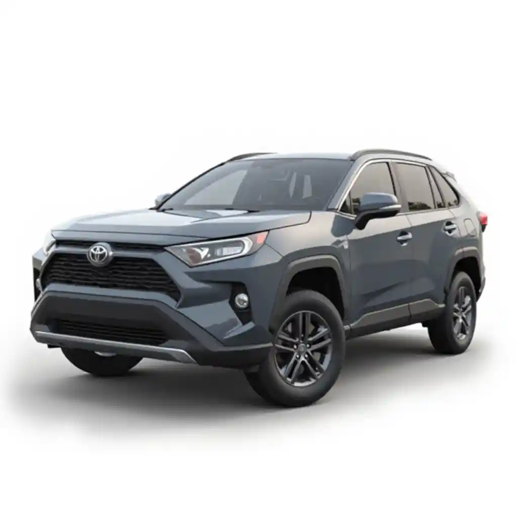 一辆深灰色的丰田RAV4 SUV停在白色背景上。